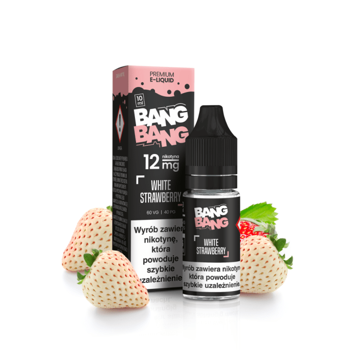 Poznaj unikalny smak z WHITE STRAWBERRY. Delikatna biała truskawka oferuje subtelne, słodkie doznania, które zaskoczą swoją oryginalnością i świeżością. BANG BANG to kolekcja e-liquidów PREMIUM, gotowych do waporyzacji, co gwarantuje wysoką jakość i atrakcyjność dla klienta końcowego.