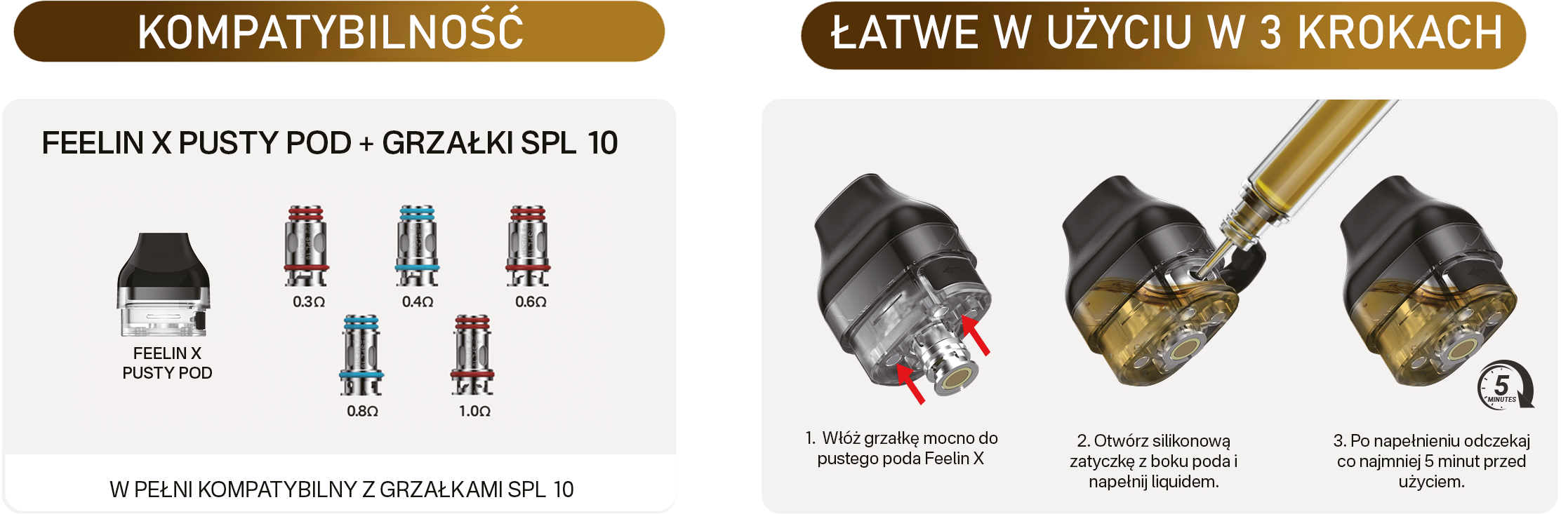 Pełna swoboda wyboru: Wkład jest w pełni kompatybilny z szeroką gamą grzałek z serii SPL10. Daje Ci to wolność w doborze oporności, pozwalając idealnie dopasować styl wapowania do Twoich indywidualnych preferencji.