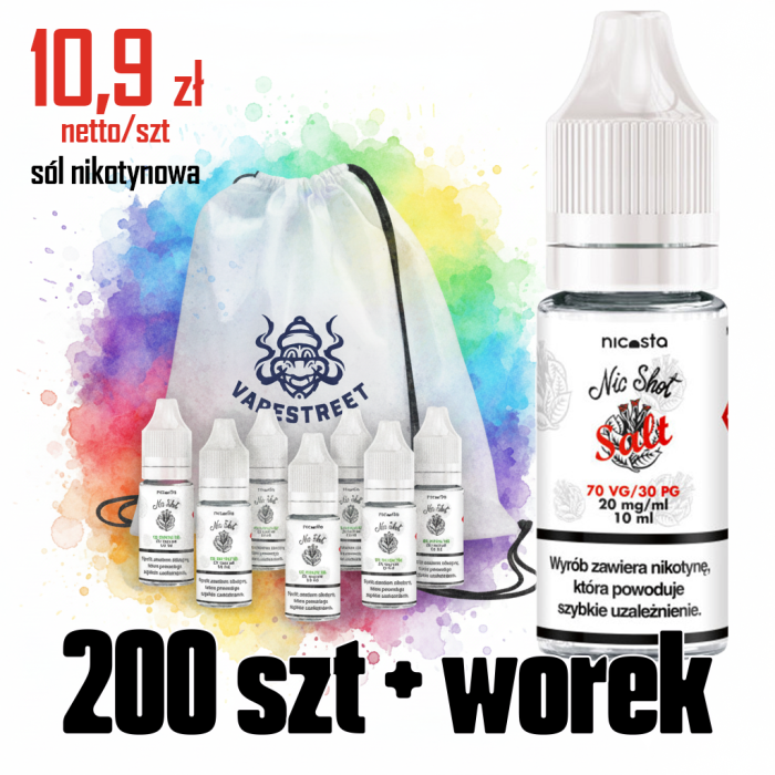 Najwyższej czystości sól nikotyny: Zapewnia gładsze odczucia podczas wapowania i szybsze wchłanianie nikotyny w porównaniu do tradycyjnej nikotyny "freebase".